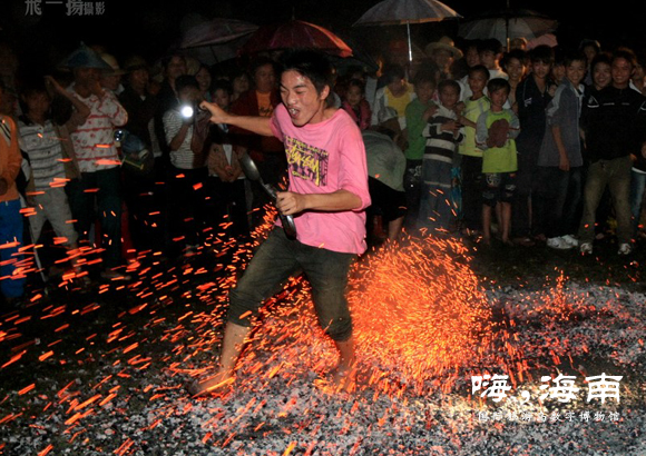 过火山,也叫“下火海”,海南民间传奇风俗之一。是海南最具民俗特色、最隆重的传统民间节日军坡节的主要表演项目之一。