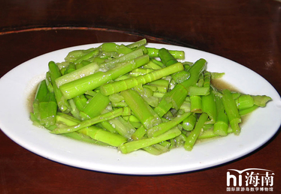 海南地区开春后2—10月上山采回生的嫩茎食。食用方法为鲜食或将茎制成酸笋。腌制方法为将煮沸的米饭水冷却后加入少许盐,放入切成段的嫩茎腌渍,5—7天发出诱人酸味时可食用。制成的笋呈浅黄,可生食凉拌或炒、煮食,加入鱼、肉等同煮味更佳,食后清凉开胃、清热解毒、清肝明目、降血压,有治疗便秘和消食、利尿等多种食疗功效。鲜茎食用方法为将嫩茎切成片后于沸水中煮2—3分钟后炒食或煮汤或凉拌。花亦可食,炒食或煮汤,既美观又美味。但根头新鲜时有毒,不可鲜食根头。酸雷公笋汤又是清热解毒良药,一年四季常喝雷公笋汤,可少生病。