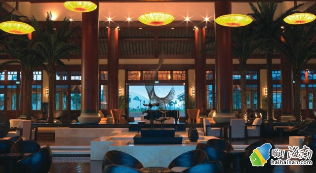 刚到酒店,还没下车就有服务生过来帮忙打开车门,提行旅,并带我们到大堂去登记,服务十分周到,不过中国没有给小费习惯,所以他们也没有开口要小费。电梯门口有专门的迎宾小姐,不过电梯很大,让人感觉很舒服。酒店有自行车和电瓶车出租,是收费的。酒店的停车场很大,如果不是自驾游的朋友,可以和酒店预定穿梭巴士,巴士的时间在房间里可以找到。房间里没有无线上网信号,只有大堂里有,而且有线上网是要收费的,20一个小时,一天80元封顶。而且房间里配有送餐服务,餐饮类别比较齐全,中西口味都有,一般都可以找得到自己喜欢的,不过送餐服务也要收15%的服务税,不建议在亚龙湾的酒店吃饭,东西都比较贵,如果时间不晚可以到市区的海鲜广场,或者红纱码头去吃海鲜价格比酒店里的便宜多了。酒店里的酒吧很有特色,鸡尾酒的味道也很不错。而且酒店还提供了很多水上活动,不过由于下午都下雨,无缘体验。