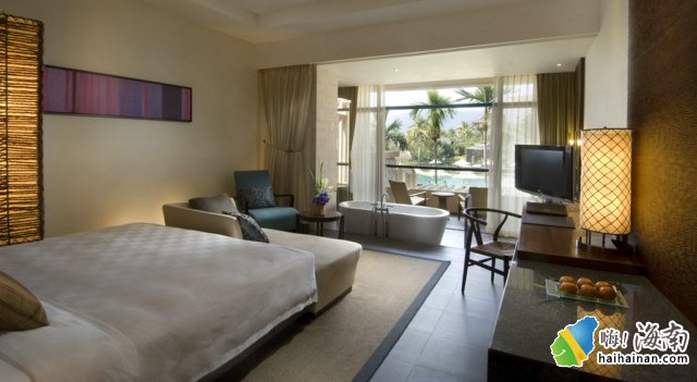 酒店是整体很大,共有501套房间,每间房都有配有8平米的阳台,步入式衣帽间、可调光黎族纹饰房灯、双洗脸盆、独立沐浴房、宽体浴缸,双上网接口等,配备十分齐全,可以使顾客旅游,工作,休闲“三不误”。