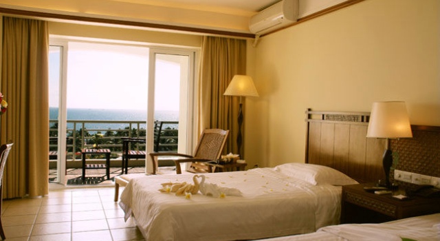 酒店的双人房标间空间还是很大的,只是瓷砖和墙壁微微泛黄,显得有些陈旧。和气派的泳池相比,反差有些大,好在宽敞的阳台弥补了些许的遗憾。阳台上附有躺椅,便于休憩时欣赏周边美丽的景色,即使是不会游泳的人,也可以在阳台驻足观赏池中戏耍的人群,与他们同乐。